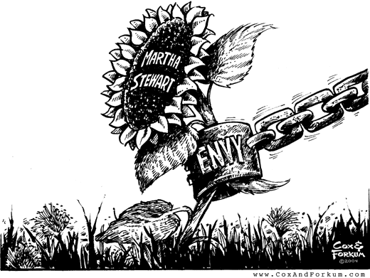 Do you really think that same jury that convicted Martha Stewart on those questionable charges would have convicted an average Joe or Jane who was just like them? Not a chance. One juror by the name of Chappell Hartridge called his verdict a “victory for the little guys.” Clearly he saw himself as the “little guy” and Martha as the big tycoon who needed to be brought down to size—facts of the case be damned. (OpinionEditorials.com, 07/21/04.)